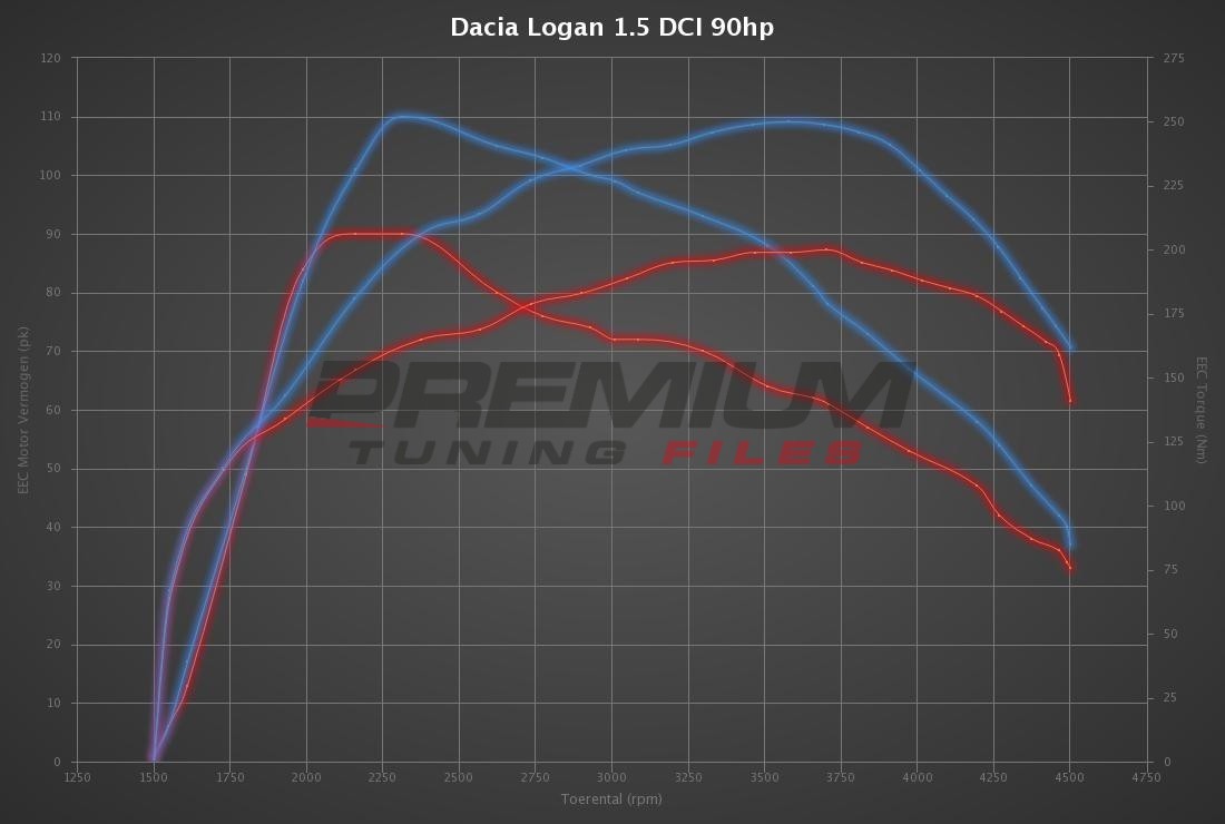 For us, safety is as important as performance, so we only use the highest quality tuning tools and software. Moreover, the optimization of each Dacia Logan (2013 - 2015) 1.5 DCI 90hp tuning file is the result of continuous development on our 4 wheel drives Dyno, at Dynatek Belgium, the head office of Premium Tuning Files.